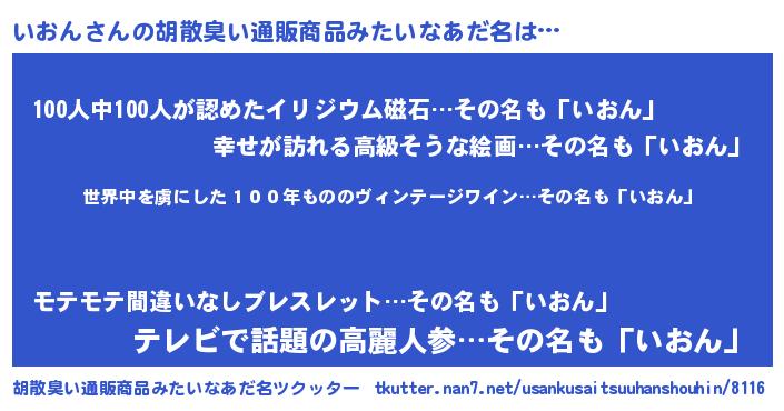 | 意味不明あだ名 | 『住所不定無職いおん(1歳)』『自称いおん』 |