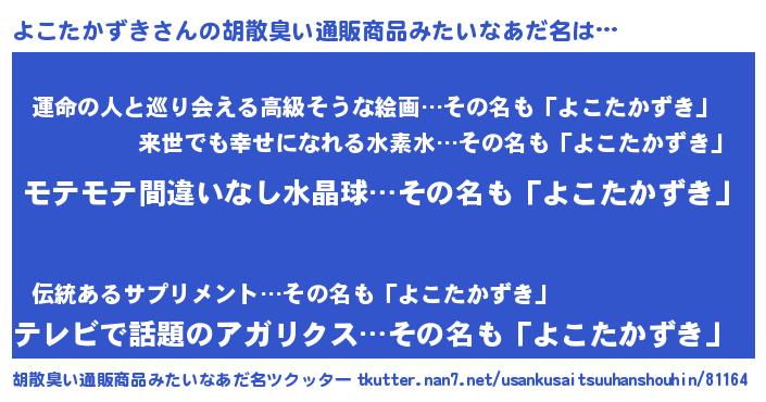 | 肩書あだ名 | 『よこたかずきCEO』『よこたかずき閣下』 |