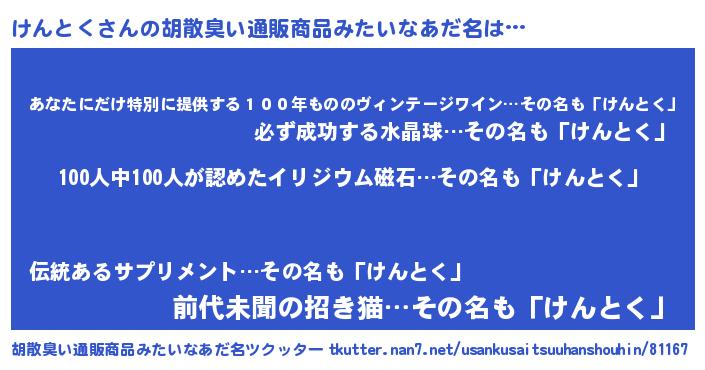 けんとくさんの胡散臭い通販商品みたいなあだ名をツクッター!