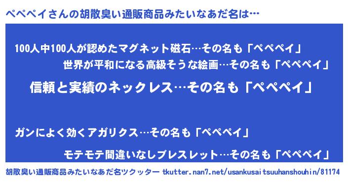 | 意味不明あだ名 | 『とにかく怪しいペペペイ』 |