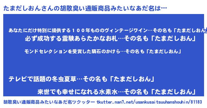 | 欧米人風あだ名 | 『アンジェラ・たまだしおん』 |