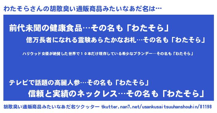 | 意味不明あだ名 | 『住所不定無職わたそら(91歳)』 |