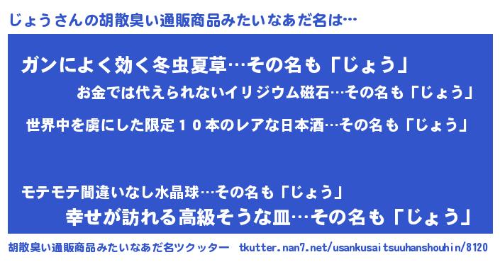 じょうさんの胡散臭い通販商品みたいなあだ名をツクッター!