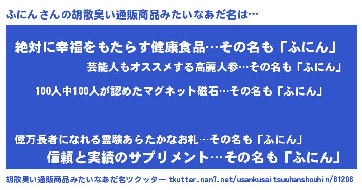 | 意味不明あだ名 | 『しいたけ科ふにん属』『永久保存ふにん』 |