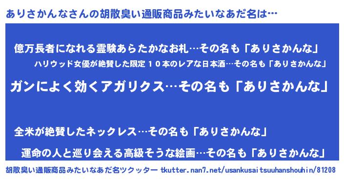 | 意味不明あだ名 | 『自称ありさかんな』 |
