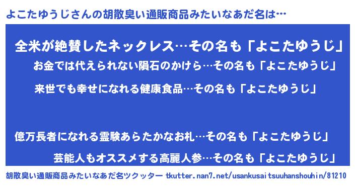 | ヘコむあだ名 | 『よこたゆうじ(笑)』『よこぷりん』 |