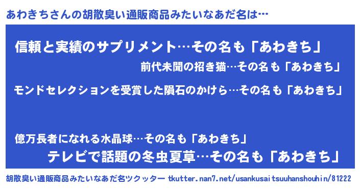 | ヒーロー風カッコイイあだ名 | 『慈愛の使者あわきち』『魔戒騎士アワ』 |