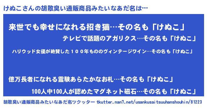| ヘコむあだ名 | 『けぬこ(笑)』『けぬにー』『牛乳』 |