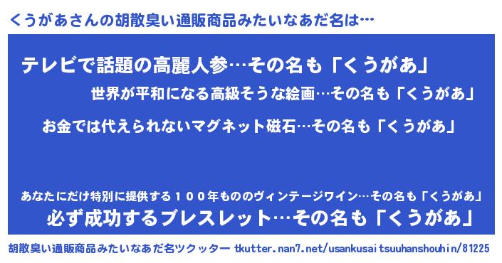 | ヘコむあだ名 | 『くうにー』『牛乳』『くうがあ(笑)』 |