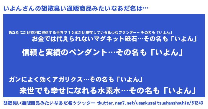 | ヘコむあだ名 | 『いよぷりん』『いよん(震え声)』 |