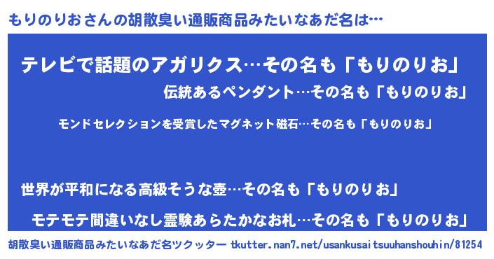 | ヒーロー風カッコイイあだ名 | 『慈愛の使者もりのりお』『黄金騎士モリ』 |