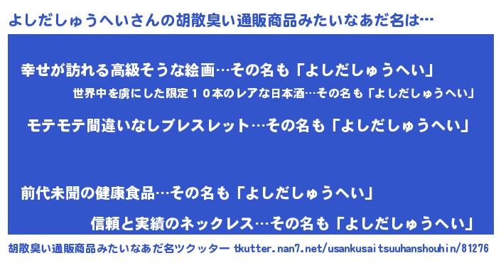 | 肩書あだ名 | 『よしだしゅうへい社長』 |