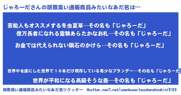 | 女子向けラノベタイトル風あだ名 | 『じゃろーだ恋絵巻』『闇のじゃろーだ』 |