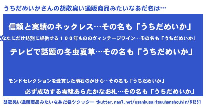 | 意味不明あだ名 | 『自称うちだめいか』 |