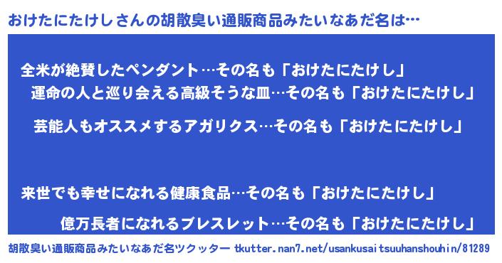 | 意味不明あだ名 | 『自称おけたにたけし』 |