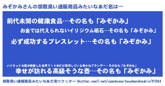 | 男性向けラノベタイトル風あだ名 | 『みぞかみの憂鬱』『緋弾のミゾカミ』 |