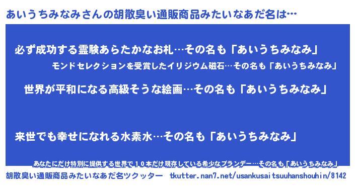 | 欧米人風あだ名 | 『あいうちみなみクリステル』 |