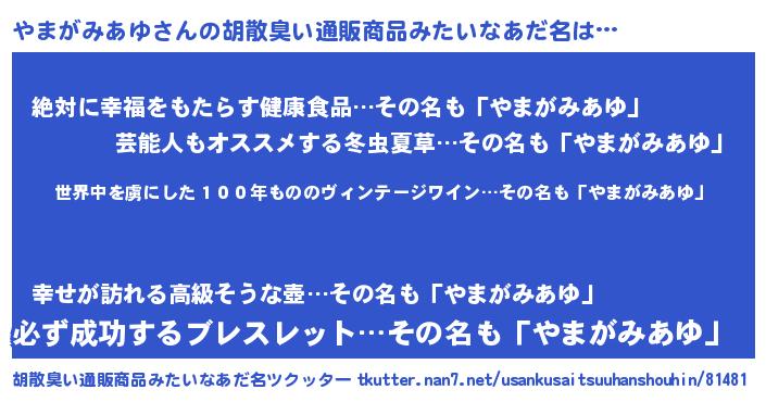 | ヘコむあだ名 | 『やまがみあゆ(笑)』『やまにゅー』 |