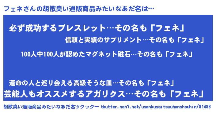 | 意味不明あだ名 | 『眠気覚ましガムフェネ味』『自称フェネ』 |