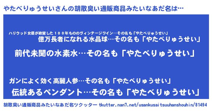| 欧米人風あだ名 | 『トリンドルやたべりゅうせい』 |