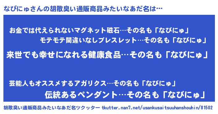 | 意味不明あだ名 | 『永久保存なびにゅ』『ペロリンなびにゅ』 |