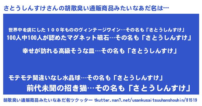 | 意味不明あだ名 | 『さとうしんすけフォーエバー』 |