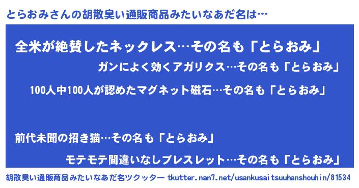 | 意味不明あだ名 | 『眠気覚ましガムとらおみ味』 |