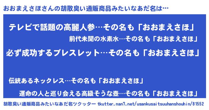 おおまえさほさんの胡散臭い通販商品みたいなあだ名をツクッター!