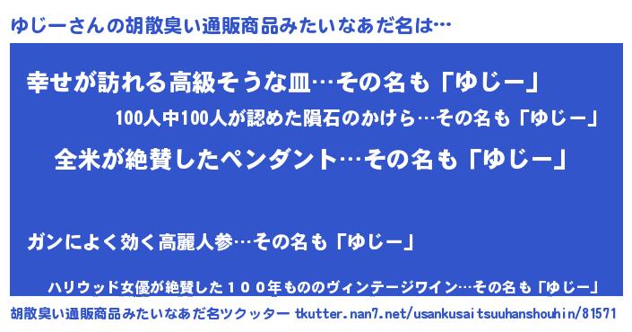 | 意味不明あだ名 | 『とにかく怪しいゆじー』『自称ゆじー』 |