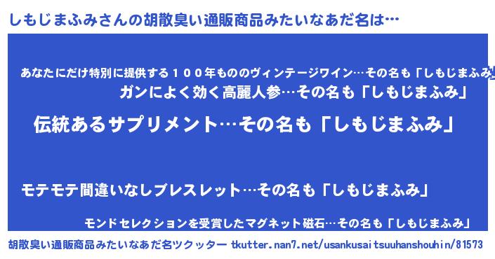 | 意味不明あだ名 | 『とにかく怪しいしもじまふみ』 |