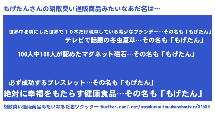 | ヘコむあだ名 | 『もげたん(笑)』『もげにゅー』 |
