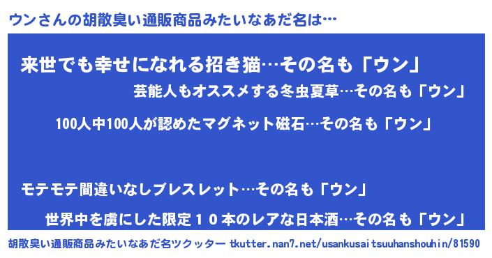 | ヒーロー風カッコイイあだ名 | 『正義の使者ウン』『ネオウン』 |