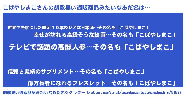 | 意味不明あだ名 | 『自称こばやしまこ』 |