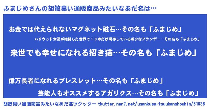 | 女子向けラノベタイトル風あだ名 | 『ふまじめの契約王妃』『ふまじめ恋絵巻』 |