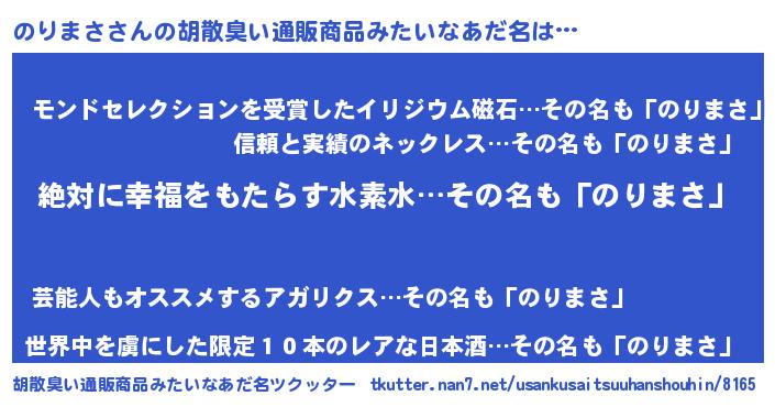 | ヘコむあだ名 | 『のりまさ(苦笑)』『のりっ子』 |