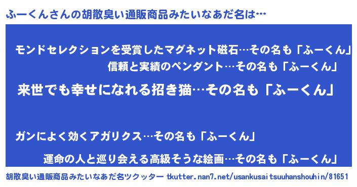 | ヒーロー風カッコイイあだ名 | 『ネオフークン』『愛の使者ふーくん』 |