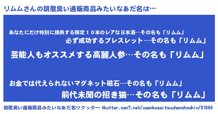 | ヘコむあだ名 | 『リムム(笑)』『リムもー』 |
