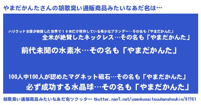 | ヘコむあだ名 | 『やまだかんた(苦笑)』『やまにー』 |
