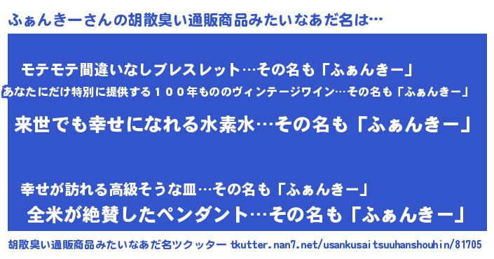 | ヘコむあだ名 | 『ふぁんきー(震え声)』『ふぁにー』 |