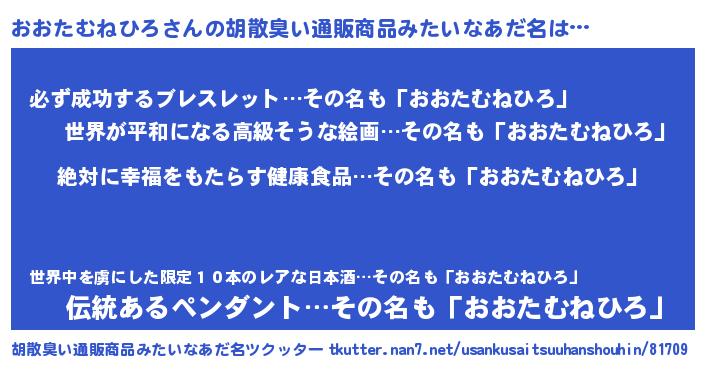 | 意味不明あだ名 | 『永久保存おおたむねひろ』 |