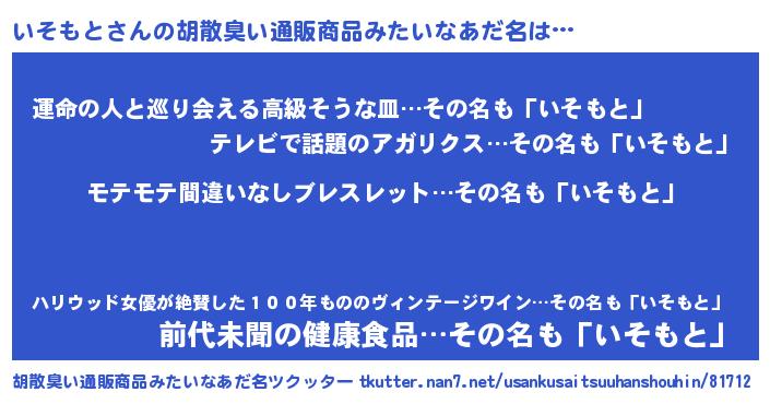 | 男性向けラノベタイトル風あだ名 | 『いそもとの憂鬱』 |