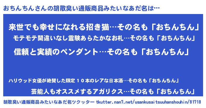 | 意味不明あだ名 | 『とにかく怪しいおちんちん』 |