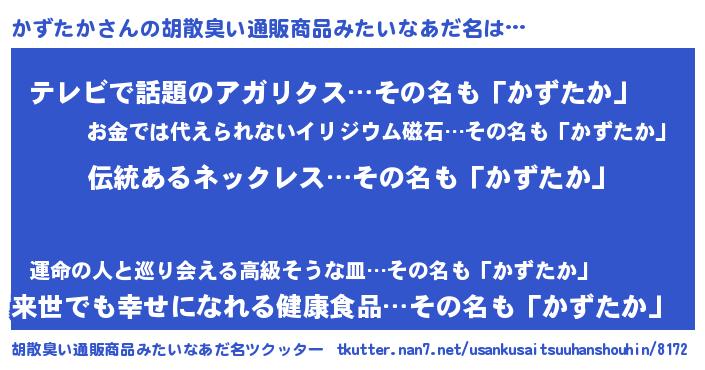 | ヒーロー風カッコイイあだ名 | 『幻影騎士カズ』『サイバー戦士カズタカ』 |
