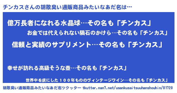 | 意味不明あだ名 | 『とにかく怪しいチンカス』 |