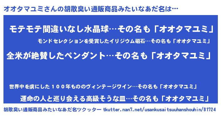 | 意味不明あだ名 | 『とにかく怪しいオオタマユミ』 |
