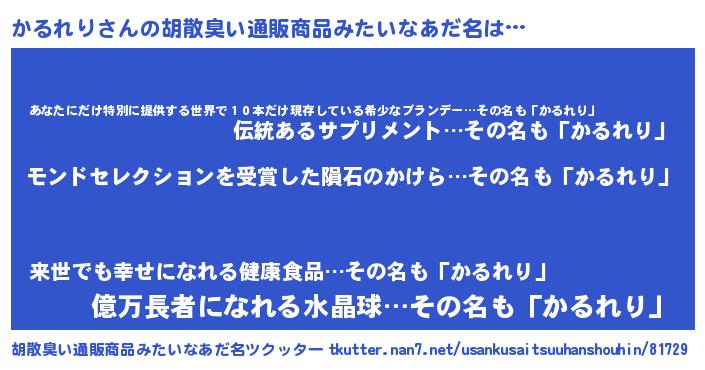 | ヘコむあだ名 | 『かるもー』『かるっちょ』 |