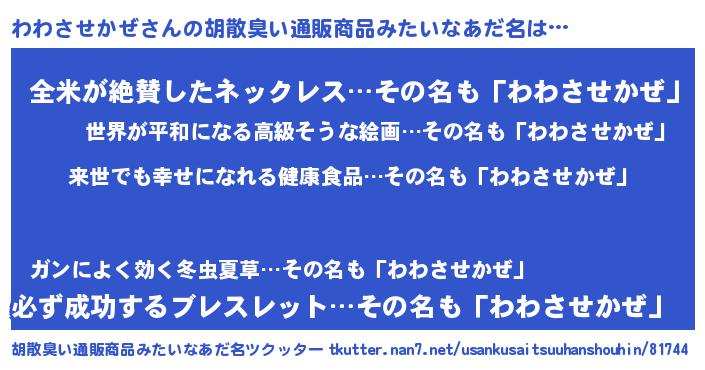 | 意味不明あだ名 | 『永久保存わわさせかぜ』 |