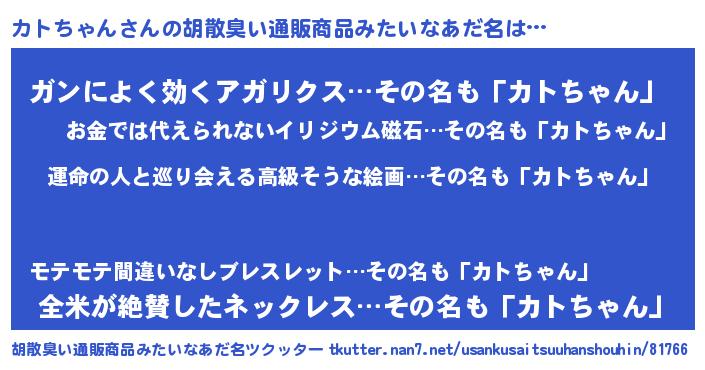 | 意味不明あだ名 | 『カトちゃんフォーエバー』 |