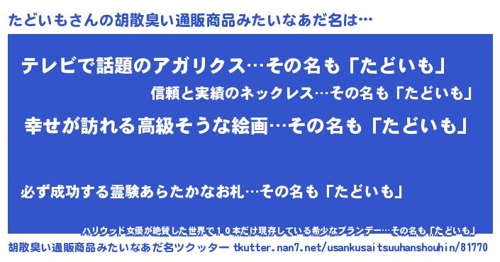 | 意味不明あだ名 | 『たどいもフォーエバー』『自称たどいも』 |