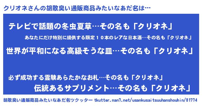 | 欧米人風あだ名 | 『クリオネクリステル』 |